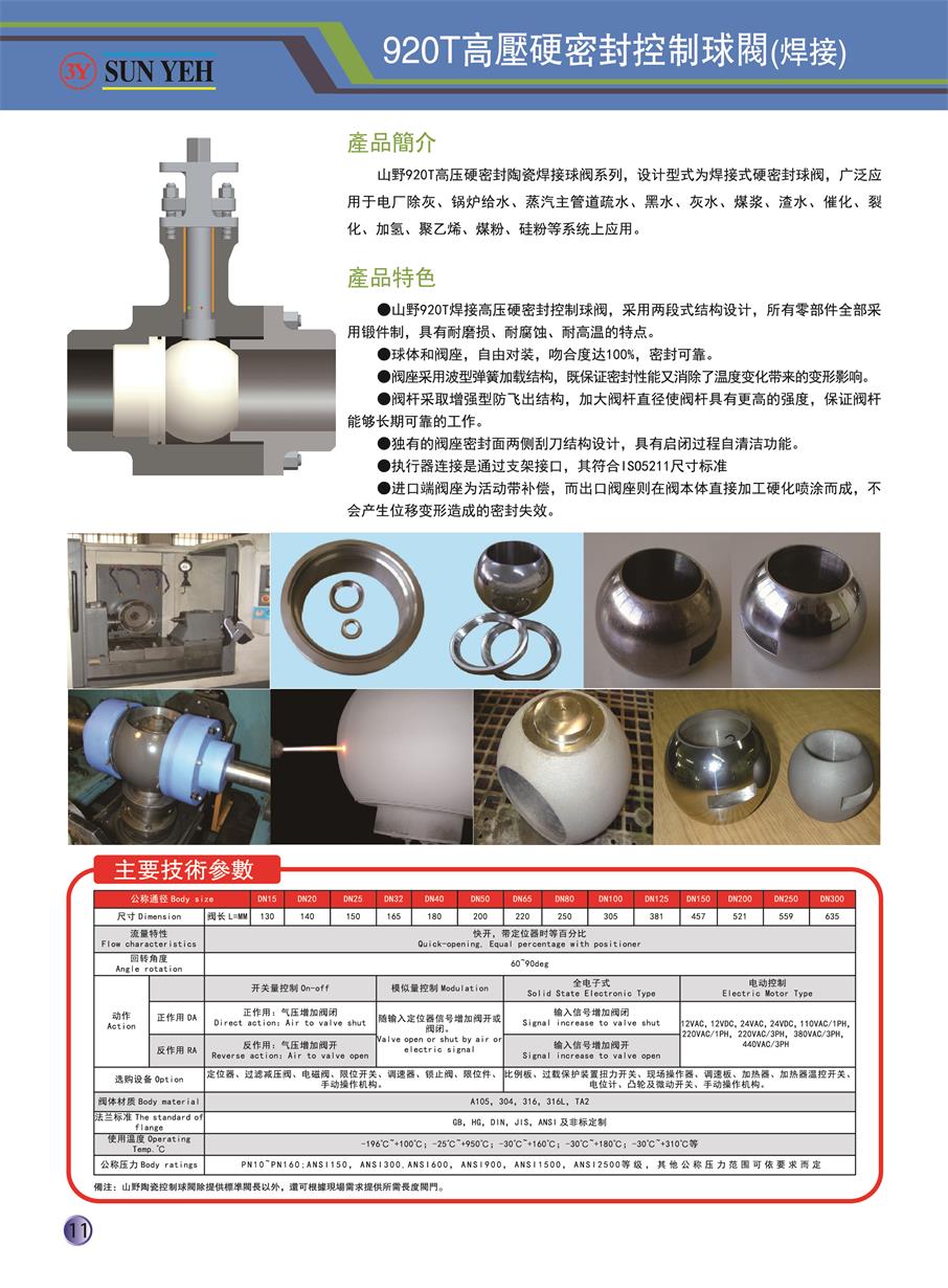山野陶瓷控制閥-920T金屬硬密封球閥