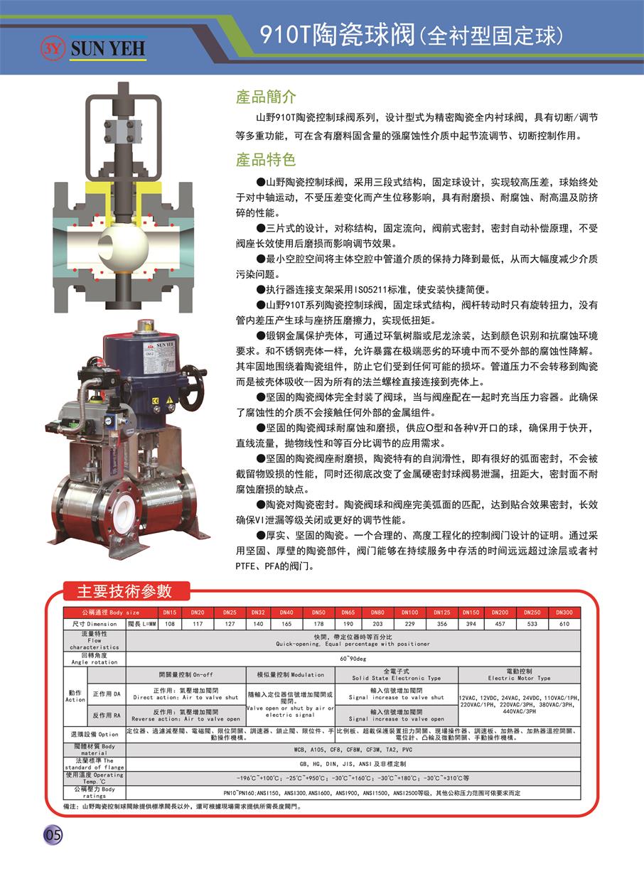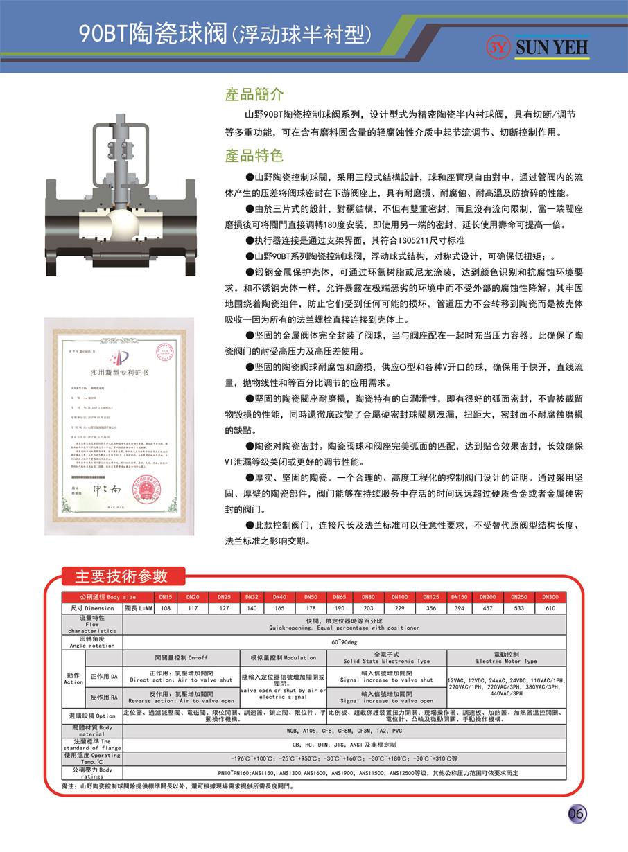 山野陶瓷控制閥綜-91BT陶瓷球閥