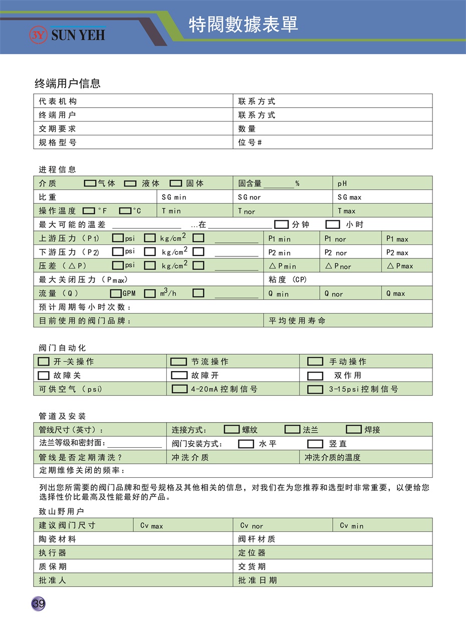 山野陶瓷控制閥-數(shù)據(jù)表單