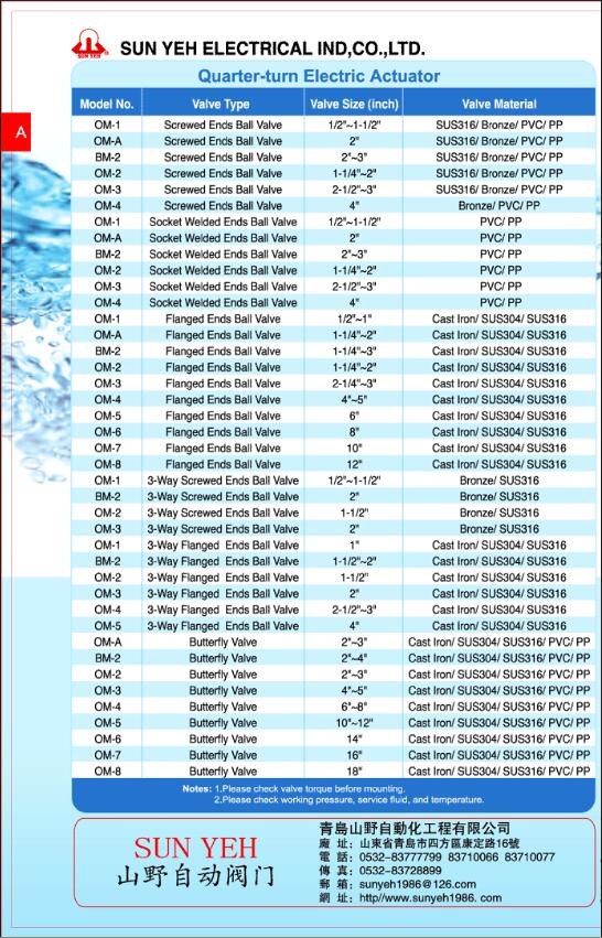 臺(tái)灣SUN YEH山野電動(dòng)執(zhí)行器