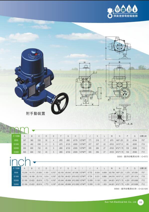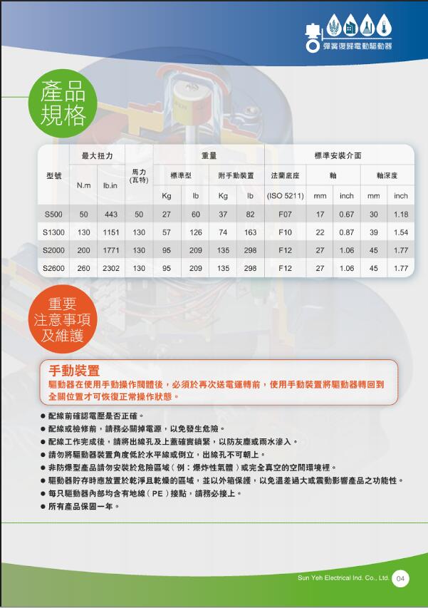 臺(tái)灣SUN YEH山野電動(dòng)執(zhí)行器